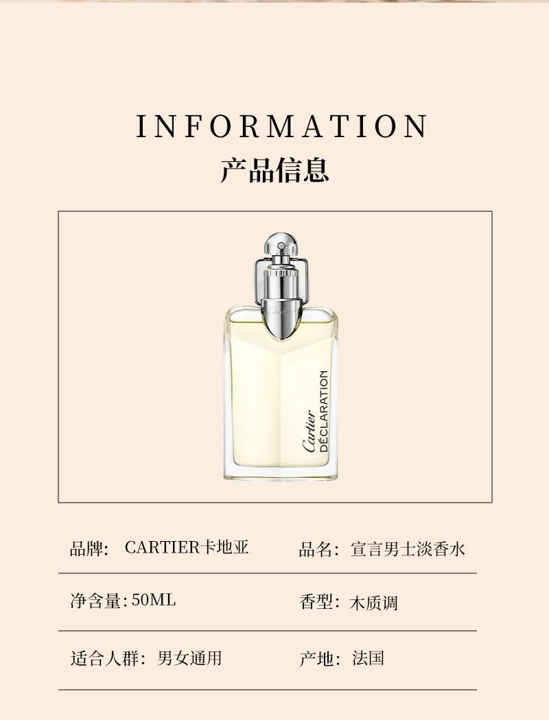 Cartier卡地亞宣言男士淡香水 木質香持久留香