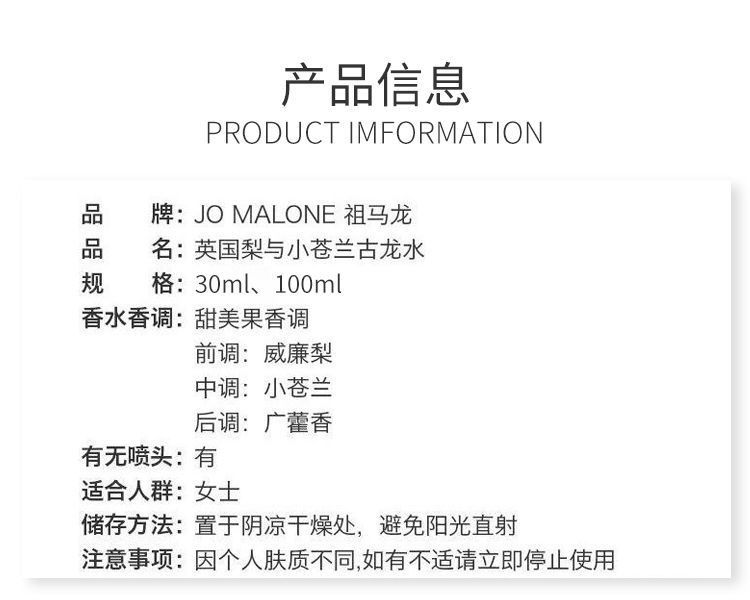 Jo Malone祖瑪瓏 香水英國梨與小蒼蘭 香水